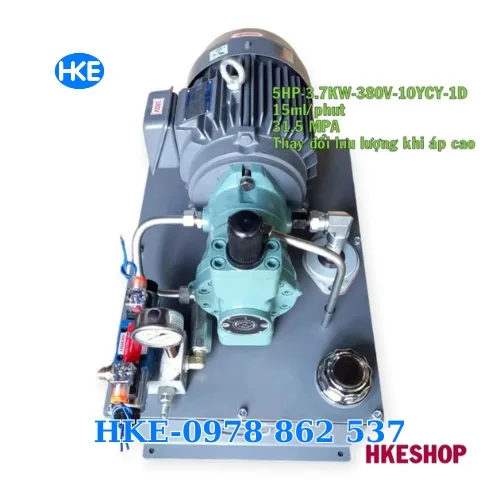 Bộ nguồn thuỷ lực áp cao 40L – 5HP – 3.7kW – 380V – Bơm piston 10YCY14-1D là giải pháp cung cấp áp suất lớn tới 315 kg/cm², lưu lượng tự điều chỉnh theo áp lực, vận hành ổn định và bền bỉ. Sản phẩm tích hợp van điện 4WE6G, đế MB-02R có chỉnh áp, phù hợp cho máy ép, hệ thống công nghiệp yêu cầu áp cao.
