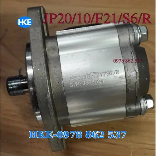 Bơm nhông thủy lực JoYoung JP20/10/S/F21/S6/R là loại bơm bánh răng có hiệu suất cao, được thiết kế cho các hệ thống thủy lực cần áp suất lớn. Bơm có lưu lượng dịch chuyển 10 ml/vòng và chịu được áp suất tối đa 240 bar. Bơm hoạt động trong dải vòng tua 500 – 3.000 vòng/phút. Bơm có cốt trục 15.88mm với chốt lavet 4mm. Các cổng dầu lớn bao gồm: Lỗ hút 3/4” (ren 27mm) và Lỗ ra 1/2” (ren 21mm). Bích bơm có đường kính 82.5mm và tâm lỗ ốc lắp là 106.4mm (lỗ $phi$11).