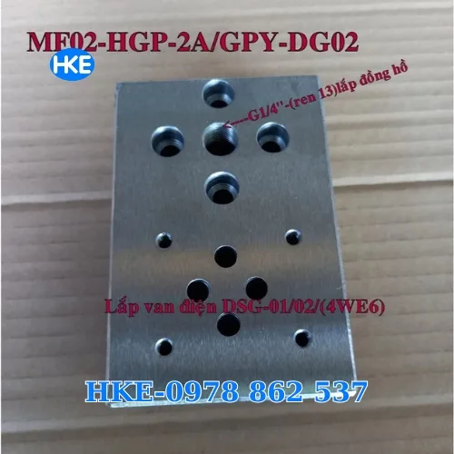 Đế van thuỷ lực DSG-02 – model MF02-HGP/GPH-DG-02 – là phụ kiện chuyên dụng để lắp trực tiếp trên bơm HGP/GPY, tích hợp sẵn vị trí gắn van tràn DG-02đồng hồ áp suất. Sản phẩm có thiết kế nhỏ gọn, dễ lắp đặt – thay thế, giúp tối ưu không gian trong các bộ nguồn thuỷ lực và giảm chi phí vận hành.