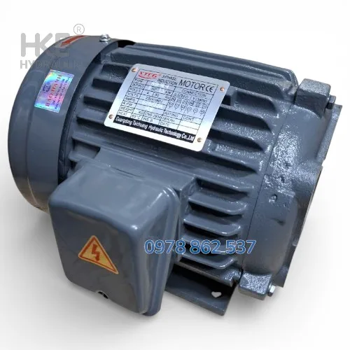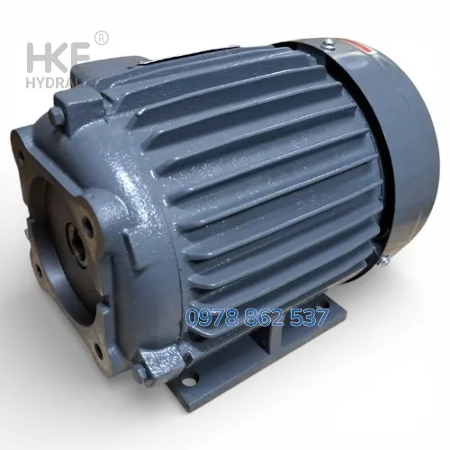 Mô tơ hoạt động theo từ trường quay của dòng điện 3 pha, giúp roto quay đều, ổn định và ít rung. So với motor 1 pha, mô tơ 3 pha cho hiệu suất cao hơn và phù hợp chạy bơm thủy lực liên tục.