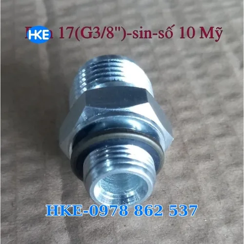 - Rắc co thủy lực ren 17 thẳng G3/8” – số 10 Mỹ được sử dụng để kết nối đường ống dầu thủy lực với thiết bị như van, bơm, xi lanh một cách chắc chắn và kín khít, đảm bảo dòng dầu lưu thông ổn định.